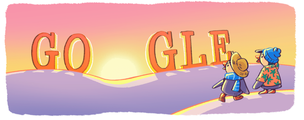 Una nuova puntata dei doodle festivi, con dei pinguini che guardano la prima alba del 2018