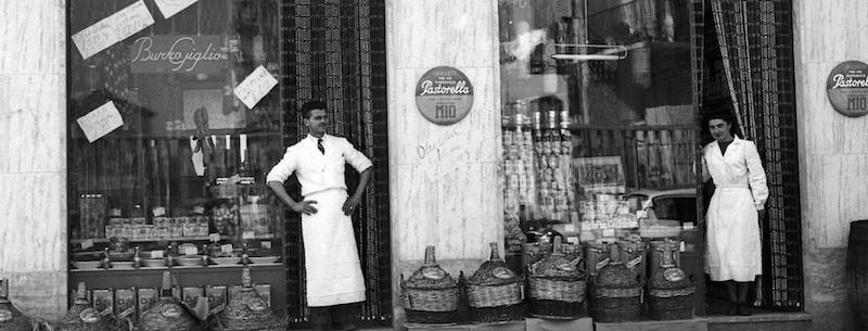 Foto in bianco e nero di negozi scomparsi, grandi magazzini che frequentiamo ancora e insegne secolari che quasi non notiamo più