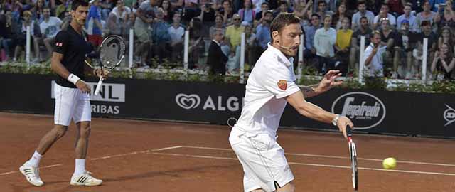 Al Foro Italico alcuni giocatori della Roma – tra cui Totti, De Rossi e Florenzi – hanno partecipato a una partita di beneficenza con i tennisti Djokovic, Pennetta e Wozniacki