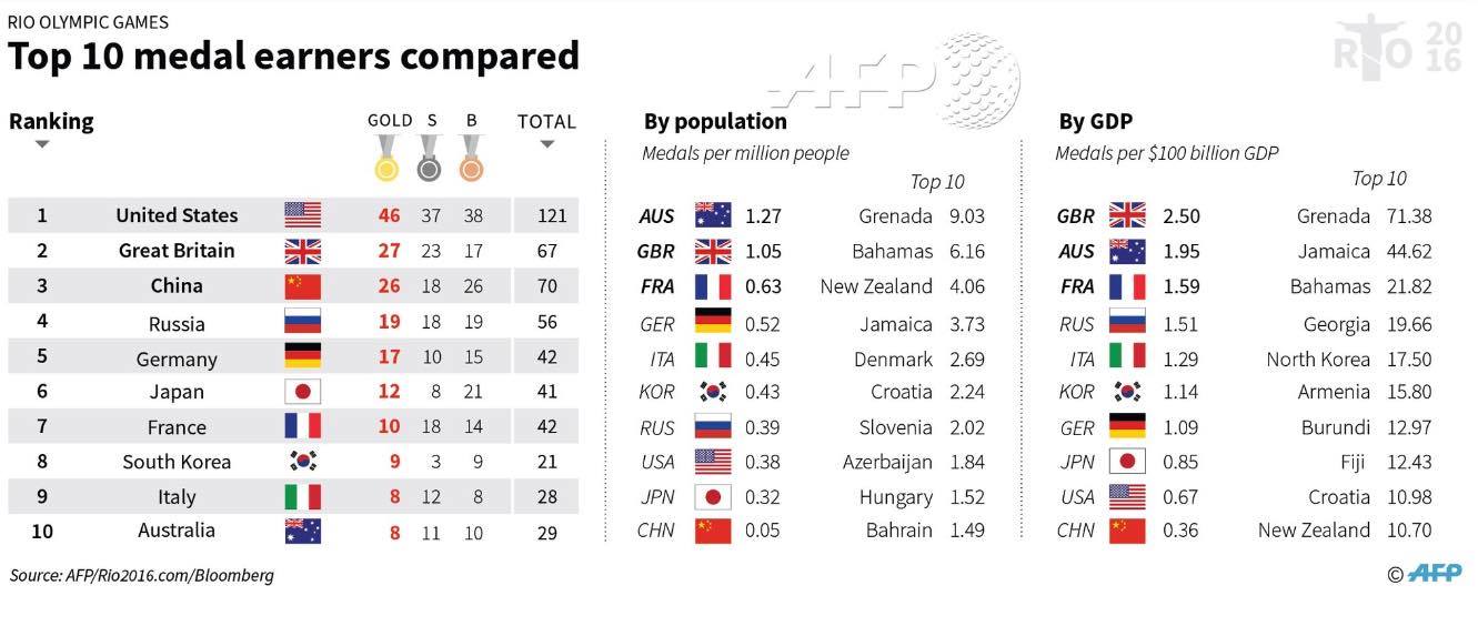 La minuscola isola di Granada vince entrambe le classifiche del "medagliere corretto"
