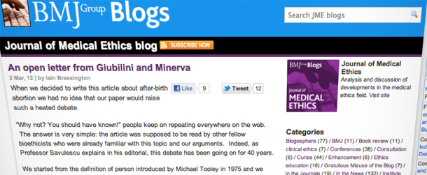 Dopo l'articolo sull'"aborto post-natale" il direttore della rivista scientifica risponde alle violente proteste e minacce contro i due autori italiani