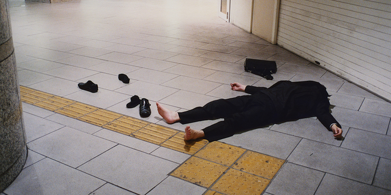 Dal troppo lavoro e dall'alcol in cui cercano una via di fuga, finendo per addormentarsi scomposti in giro, come mostrano le fotografie di Kenji Kawamoto