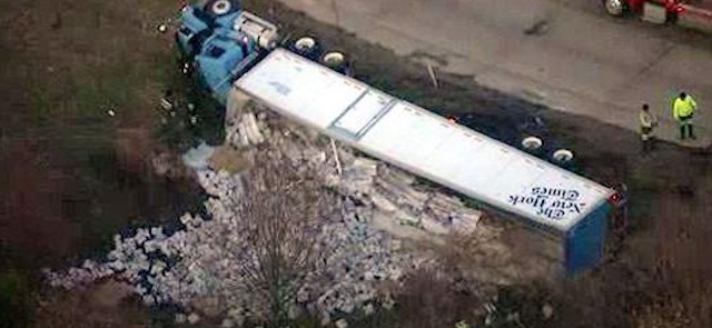 Si è rovesciato su un fianco su una strada vicino Philadelphia, perdendo quasi tutti i giornali che trasportava: in molti ci hanno scherzato sopra