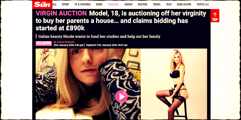 Il Corriere ha intervistato la 18enne italiana di cui aveva parlato il Sun: l'asta c'è stata davvero, ma la sua era una «provocazione»