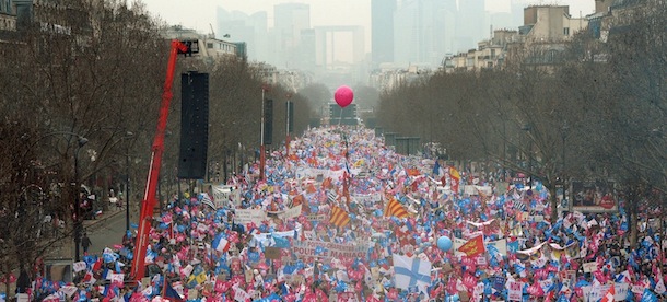 Le foto delle migliaia di persone che hanno protestato contro la proposta di legge su matrimoni e adozioni gay, con qualche disordine