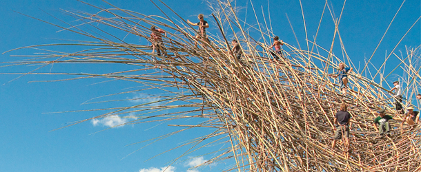 Le foto di una delle più grandi esposizioni d'arte all'aperto: rinoceronti e tavole da surf che spuntano dalla sabbia e onde oceaniche fatte di Barbie