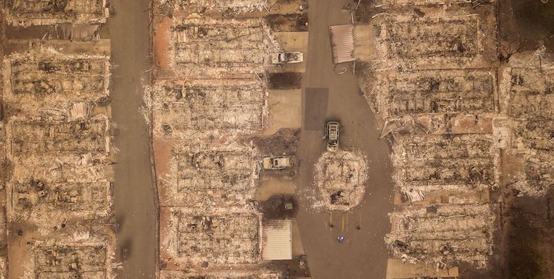 È la città più danneggiata dall'incendio nella California settentrionale: sono morte 56 persone e non rimane in piedi praticamente niente
