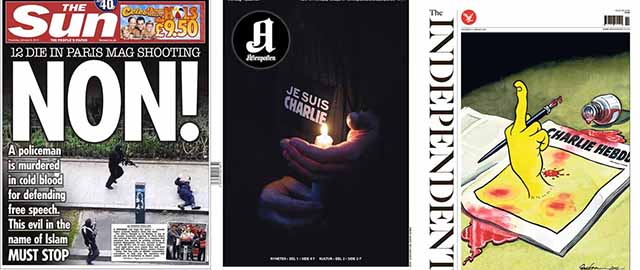 La notizia è in apertura praticamente dappertutto: si parla di "massacro" e di "attacco alla libertà", e ci sono molte vignette