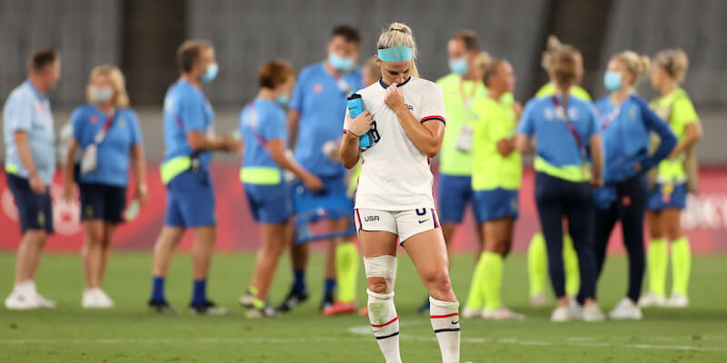 L’uscita dal campo della calciatrice Megan Rapinoe dopo soli tre minuti nell’ultima partita della sua carriera