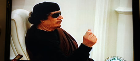 La televisione di stato libica trasmette nuove immagini di Gheddafi durante un incontro con i leader tribali