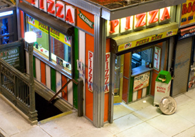 Sopra c'è la strada, con locali e negozi, poi la stazione della metropolitana, poi il treno: tutto molto piccolo e ricreato alla perfezione