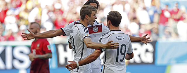 Tre gol di Thomas Müller e uno di Mats Hummels, Portogallo in dieci per oltre mezza partita: non c’è mai stata storia