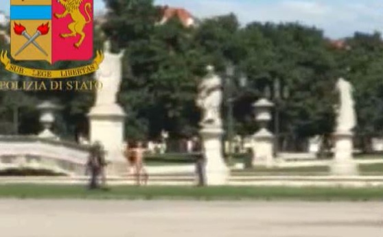 Lo si vede mentre corre nudo nel Prato della Valle, a Padova, gridando "Allah è grande": tra i passanti c'era anche l'attrice Claudia Cardinale