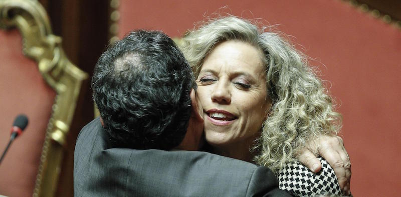 Gli abbracci a Monica Cirinnà, le facce lunghe di chi ha votato contro e i disegnini regalati alla vicepresidente del Senato