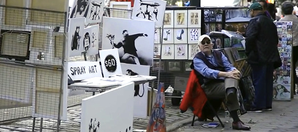 Il video dell'anonimo banchetto allestito da Banksy stesso a New York, che ha incassato 420 dollari per grafiche valutate 200mila