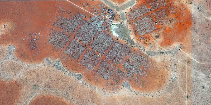 Grandi fotografie satellitari mostrano gli sterminati campi profughi africani dove vivono decine di migliaia di persone