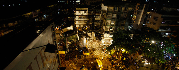 Ci sono almeno 45 morti, tra le persone che vivevano nel cantiere e occupavano l'edificio in costruzione (abusivo), e si cerca ancora tra le macerie