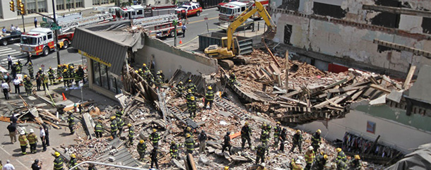 Era in demolizione e si è abbattuto contro un piccolo negozio confinante, uccidendo 6 persone e ferendone 14 (foto)