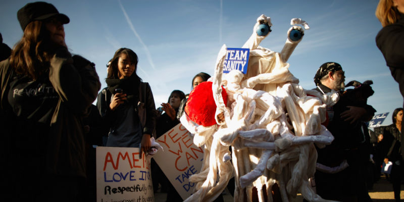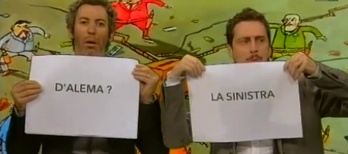 Coi cartelli, in parodia dell'apparizione dei due promessi sposi gay a Sanremo