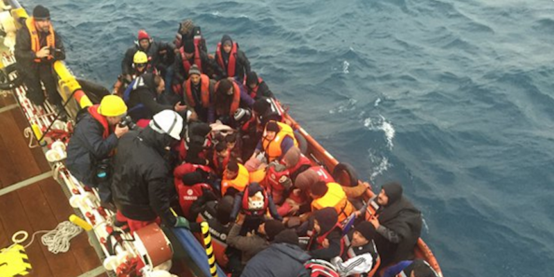 Che è un giornalista molto bravo del Guardian, da tre giorni a bordo di una barca di MOAS vicino alle coste della Turchia