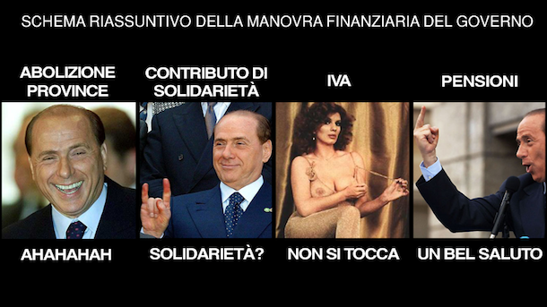 Sparisce il contributo di solidarietà, niente aumento dell'IVA, l'abolizione delle province rimandata a una legge costituzionale: ma arriverà "un intervento sulle pensioni"
