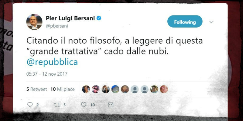 Ha scritto su Twitter «cado dalle nubi» a proposito di un'ipotetica trattativa con il PD che oggi gli attribuiscono i quotidiani