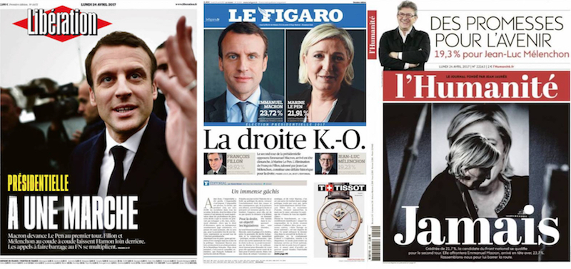 Per commentare il risultato del primo turno delle presidenziali si parla di "destra KO" e della Francia "spaccata in due"
