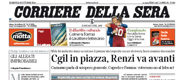 La manifestazione della CGIL a Roma, la morte di Reyhaneh Jabbari e il pareggio in trasferta della Roma