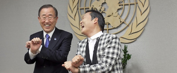 Ban Ki-moon ha accolto PSY nel quartier generale dell'ONU, e ha accennato qualche passo di danza