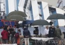 I preparativi per il raddrizzamento, molti giornalisti, gente che osserva, preghiere e una tromba d'aria