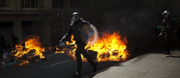 Le foto delle manifestazioni contro la riforma del lavoro del governo Rajoy, iniziate stanotte: ci sono stati già scontri e arresti