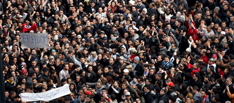 I manifestanti chiedono un nuovo governo e dicono di essersi ispirati a quello che è successo in Tunisia