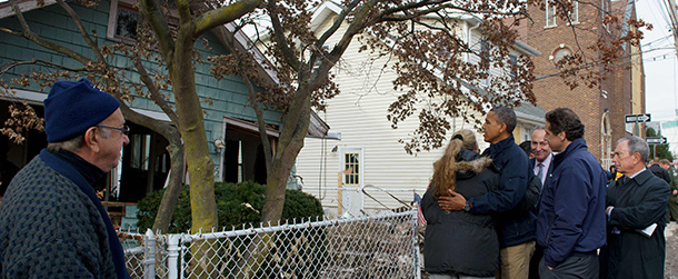 Le foto della visita a Staten Island, una delle aree più colpite dalla tempesta Sandy due settimane fa