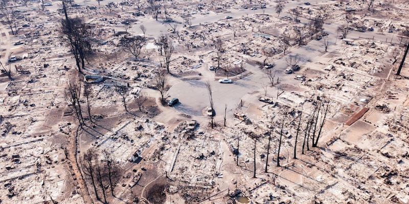 Le foto di un suo quartiere completamente distrutto dalle fiamme negli ultimi giorni: sono morte almeno 23 persone