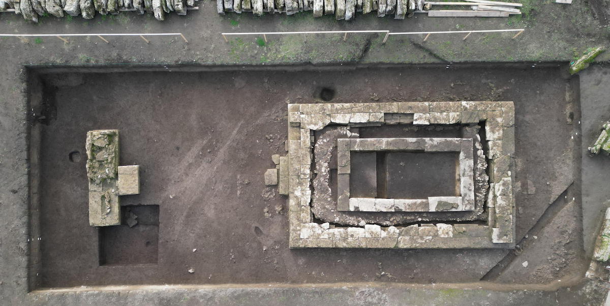 La foto del muro caduto nella necropoli di Porta Nocera: nel fine settimana ci sono stati tre crolli