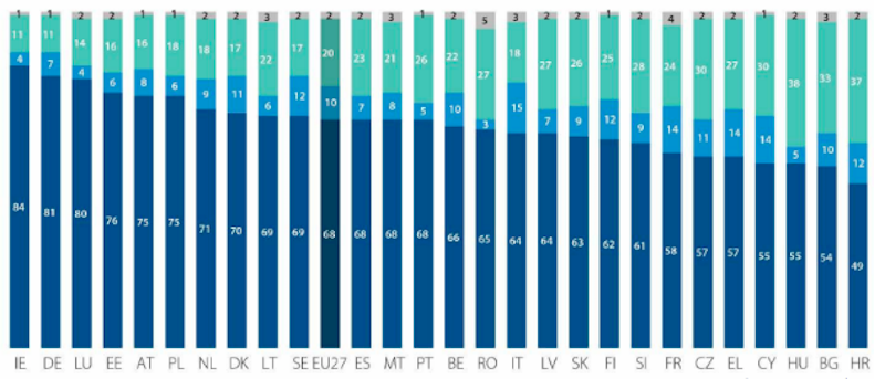 Lo dice l'annuale sondaggio realizzato dal Parlamento Europeo: rispetto all'anno scorso abbiamo superato pure la Repubblica Ceca