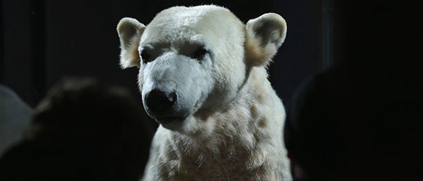 A Berlino è stato creato un modello dell'orso polare morto nel 2011: è fatto di materiali sintetici, ma la pelliccia è quella originale