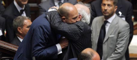 Alfonso Papa abbracciato da un deputato del PdL (chi?), Berlusconi che lascia l'aula contrariato e gli interventi al Senato e alla Camera