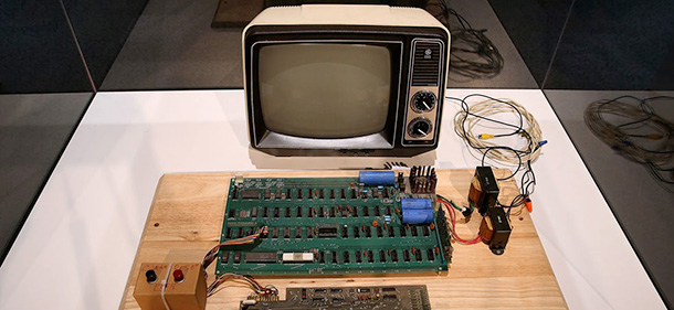 Il primo raro computer della società, ideato da Jobs e Wozniak, è all'all'asta da Christie's: parte da una base di 300mila dollari, nel 1976 ne costava 666,66