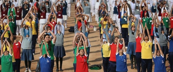 Gli studenti indiani hanno celebrato i 150anni della nascita del monaco induista Swami Vivekananda, che portò lo yoga in Occidente