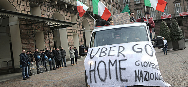 C'è stata una manifestazione – con una coda agitata – per protestare contro l'app accusata di concorrenza sleale