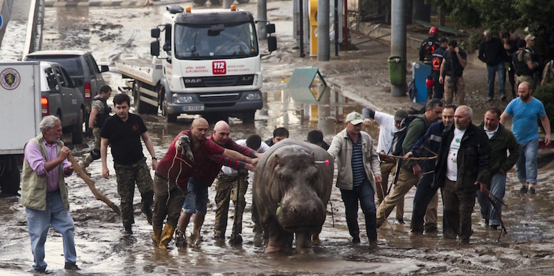 Tigri, leoni e orsi sono pericolosamente liberi per le strade della capitale della Georgia: almeno dodici persone sono morte per le forti piogge