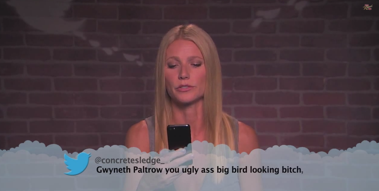 Per una delle rubriche ricorrenti del programma Jimmy Kimmel Live! di Jimmy Kimmel, un gruppo di famosissimi attori (Gwyneth Paltrow, Lena Dunham, Gerard Butler, Ty Burrell, Bob Newhart, Britney Spears, Geena Davis, Chris Pratt, Chloe Grace Moretz, Scott Foley, Michael Chiklis, Ted Danson, John Stamos, Lisa Kudrow e Adam Sandler) legge una selezione di tweet più o meno cattivi che li riguarda. In modo più o meno divertito.