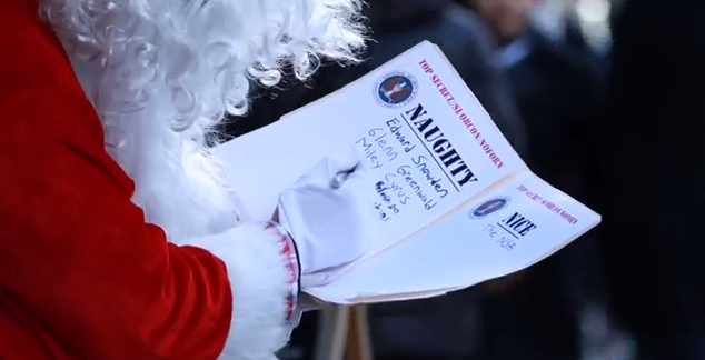 La ACLU (un'organizzazione non governativa orientata a difendere i diritti civili e le libertà individuali negli Stati Uniti) ha realizzato una parodia video della canzone Santa Claus is coming to town. Il testo originale esorta i bambini a comportarsi bene spiegando che Babbo Natale sa sempre tutto quello che fanno, sa quando sono svegli e quando dormono, sa quando piangono e quando sono tranquilli, e in base al loro comportamento compila una sua lista di buoni e cattivi. Nella versione della ACLU una spia-Babbo Natale controlla tutte le conversazioni che avvengono attraverso tutti i dispositivi, “sa quando dormi e quando sei sveglio”, e ha la sua lista dei buoni e dei cattivi. Solo che sulla lista dei cattivi c’è Edward Snowden, Glenn Greenwald (e Miley Cyrus), su quella dei buoni…la NSA.