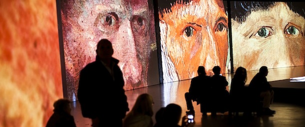 Fino al 3 marzo duemila opere verranno proiettate su schermi giganti, ma anche sui muri, sul soffitto e sul pavimento del centro espositivo