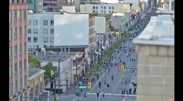 La foto del momento è stata scattata a Vancouver, durante gli scontri con i tifosi dell'hockey