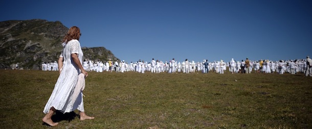 I seguaci del movimento religioso si sono trovati sulla cima del monte Rila, in Bulgaria, tutti vestiti di bianco per festeggiare l'anno nuovo
