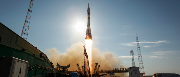 Le foto e il video del lancio di oggi della navicella, che trasporta un astronauta e due cosmonauti verso la Stazione Spaziale Internazionale