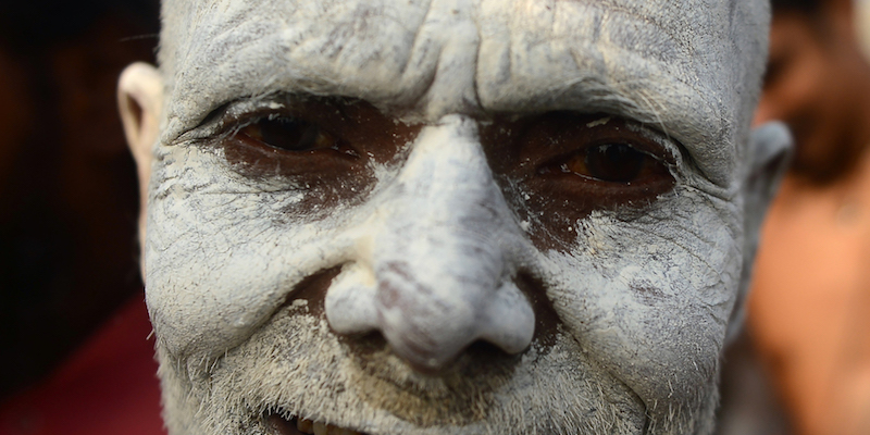 Tra le foto più belle dell'affollatissima festa induista ci sono lunghi panni colorati ad asciugare al sole