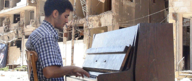 Dal 2013 un ragazzo ventenne suona il pianoforte in mezzo alle macerie di un campo profughi in Siria, dove vivono 18 mila persone